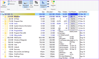 No sólo puede ver los archivos en orden ascendente o descendente de tamaño, sino también las carpetas, que pueden ser muy, muy útiles. Al pasar el cursor sobre las entradas individuales se revelarán datos aún más útiles como las fechas, la compresión, el tamaño medio de los archivos, etc.