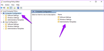 Puede que lleve algún tiempo, así que no te pongas nervioso. Ahora debería ver la ventana del Editor de políticas de grupo local con dos paneles. En el de la izquierda, haga clic en Configuración del equipo y luego haga doble clic en Plantillas administrativas en el panel de la ventana de la derecha.