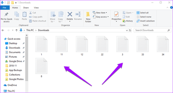 Si tiene archivos que empiezan con números como 1, 2, 3, etc., no puede ordenarlos en orden ascendente o descendente. Así es como se ve actualmente.
