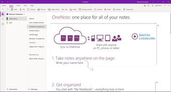Lo que hace que OneNote se diferencie del resto de las aplicaciones para tomar notas y de Whiteboard es que ofrece carpetas. Puede categorizar sus notas no sólo en carpetas sino también en subcarpetas. Los cuadernos descansan en la parte superior, seguidos de secciones y luego de páginas dentro de cada sección.
